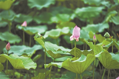 新鳳河北岸安南濕地環(huán)保主題公園內(nèi)的荷花。新華社記者 彭子洋攝