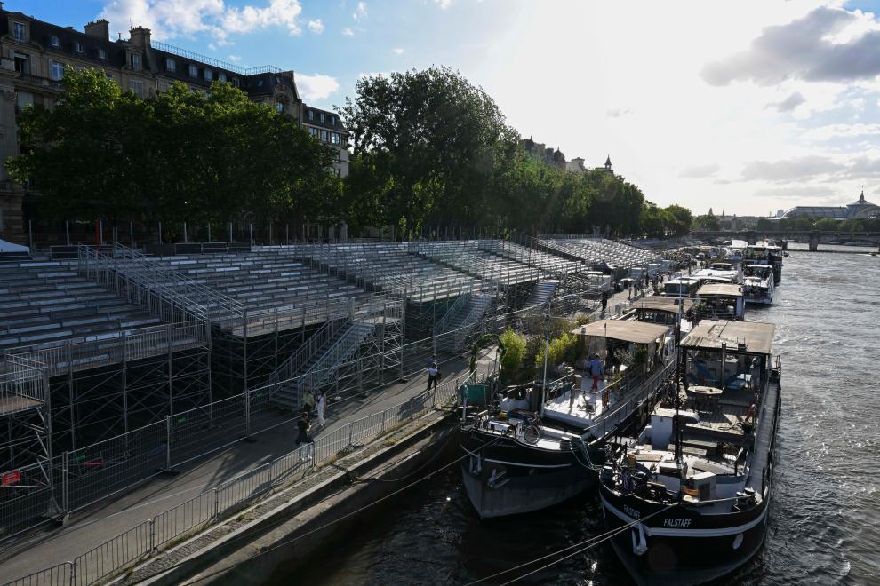 塞納河畔開幕式看臺(7月4日攝)。新華社記者 賀長山 攝